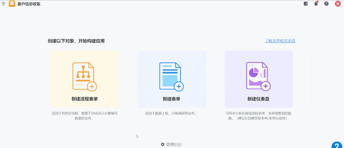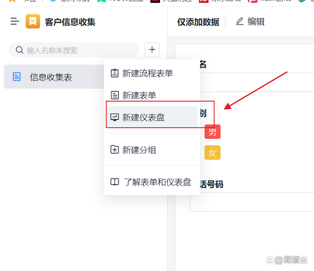 做好【信息收集表】之后,后续生成数据统计表就很方便了,这里需要用到的是【仪表盘】工具。