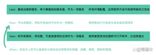 现在这个时代很多人都在说低代码,但是低代码究竟是什么呢?先解释这几个名词:laas、Paas、aPaas、Saas在此之前,先了解什么是云计算。“云”:指的就是互联网,因为之前互联网(Internet)总是以云的形象表示;“云计算”:云计算是一种资源交付和使用模式,指通过网络获得应用所需的资源(硬件、平台、软件)。最简单的云计算,其实就是像百度,搜狐这类搜索引擎,只需要简单地描述就可以获得大量的信息。而一个软件通常包括以下9个层次:“云服务”:云计算公司(比如:阿里云,华为云)会将这9个层次中的