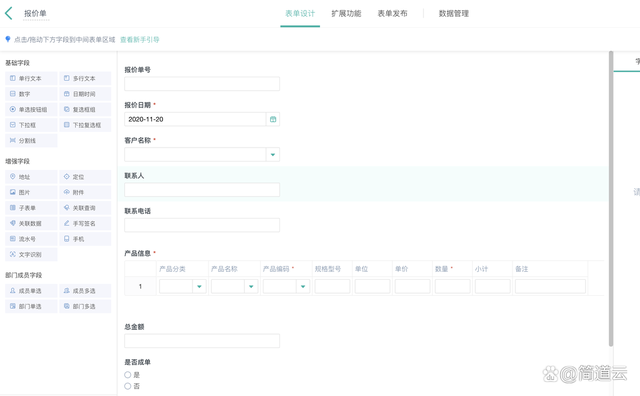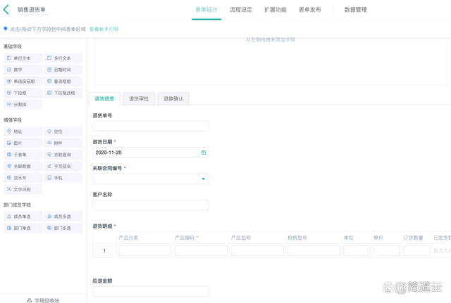 以简道云为例,我们来看看利用低代码平台如何创建系统