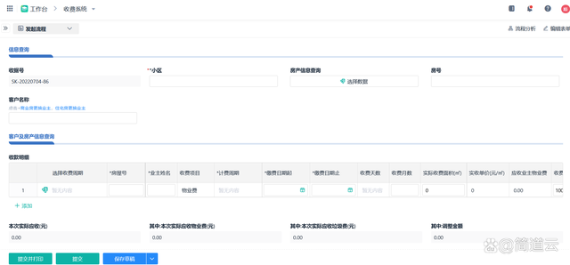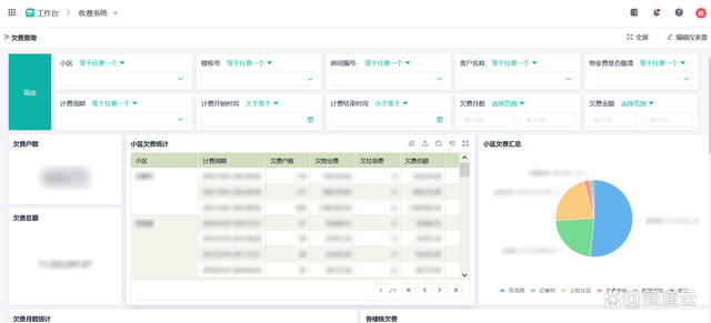 使用简道云搭建了收费管理平台,六大模块,17个表单,12个统计表,涵盖房产信息、车位信息、物业费收费、其他费用收款、折扣申请单、退款申请等,并能自动统计收费日报、应收账款、欠费查询、收款查询等,满足企业收款方面的多种需求。