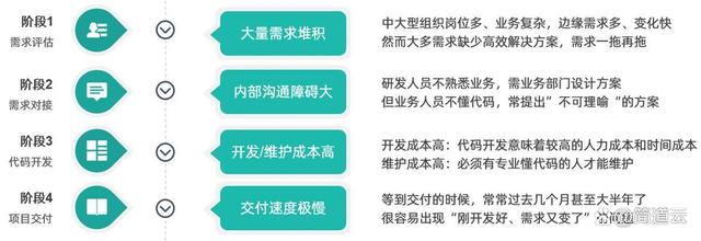 如果撇开开发成本、漫长时间周期,定制开发几乎是最完美的解决手段。但事实上,对大部分企业而言,代码开发的成本的确难以承受。