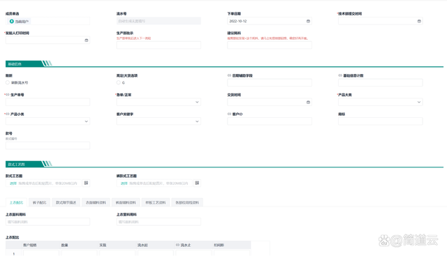 回到公司后,叶超莹开始钻研简道云的帮助文档,在张志海的帮助下,搭建了出入库系统,通过RFID标签实现了货品库存快速盘点和快速查找。之后不到一周的时间里,叶超莹就搭建了营销部下单→技术部出方案→仓库审核准备面辅材料→裁剪→缝制→整烫→检验→出库的完整业务流程。用户只要通过简道云外链提交自己的身高、体重、照片等信息,系统就会自动生成工单并流转。