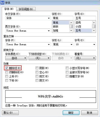 ②在字体标签里面勾选效果里面的删除线,然后确定。