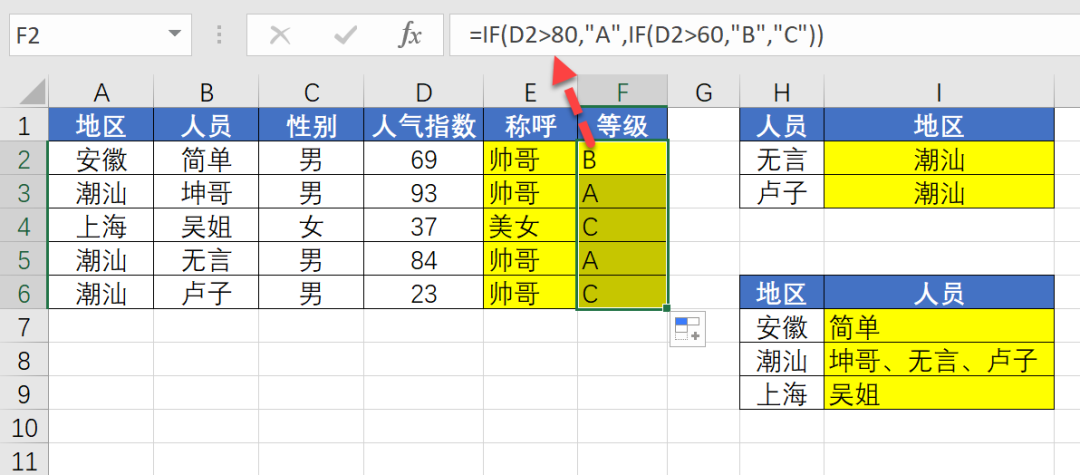 IF函数的作用,就是让满足条件的显示对应的人员,不满足条件的显示空白。