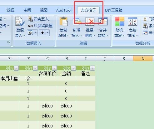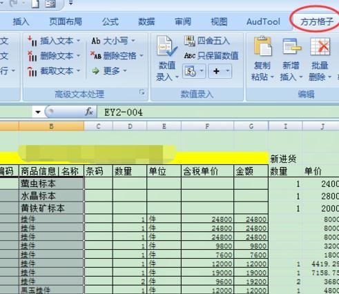 在工具栏选项卡中选择方方格子选项卡; 怎么使用excel进行信息的提取