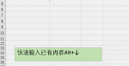 按住组合键Alt+↓,单元格上方已经输入的内容会自动出现,再用上下箭头或鼠标选取要重复输入的内容。