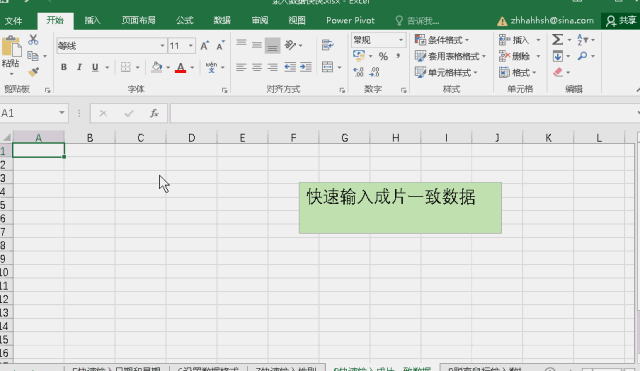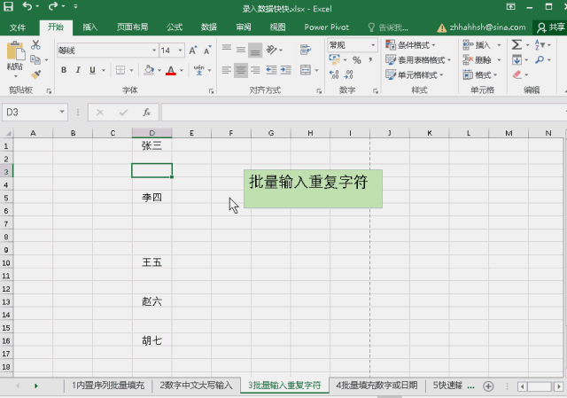 关键:输入前选中一片区域,输入后按CTRL+ENTER结束。