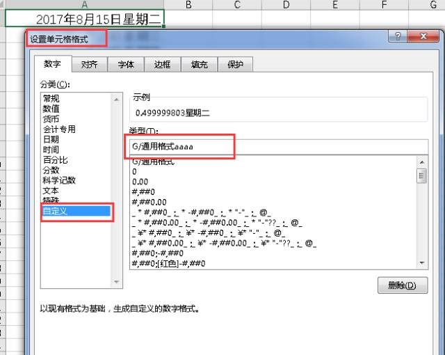 【设置单元格格式】——【自定义】,选择【通用格式】,直接在后加“aaaa”,如下图: