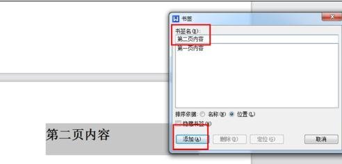 填写“书签”名称,然后“添加”就可以了。