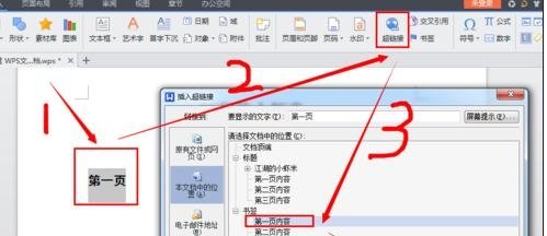 wps文档里面设置内部超链接的步骤: