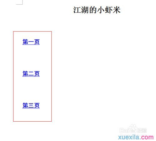 同样的方法,选择“第二页内容”,“第三页内容”进行“书签”设置。