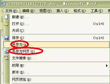 用Word打开文档,选菜单“文件”、“另存为…”(或直接点“另存为网页”):
