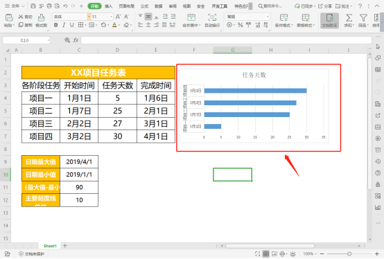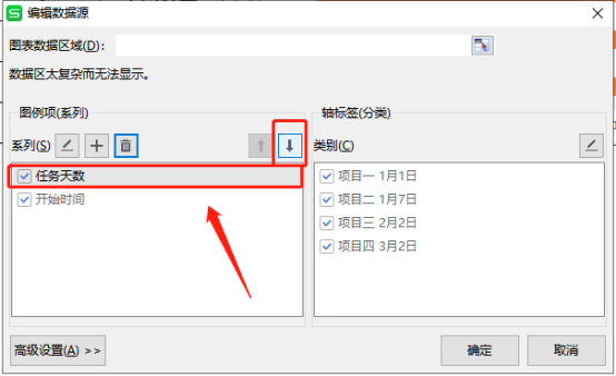 点击右边的箭头,将开始时间调整到任务天数的前面;