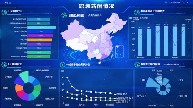 就个人所想,大屏指的是一种使用大屏的可视化展示形式。常见的大屏包括智慧城市、参观大屏等。最容易被误解的是仪表板。仪表板是一种报表,也可以视为可视化报告。通常,它围绕不同的业务分析需求有不同的主题。大屏通常显示领导关注的业务指标,如财务经营销售等核心指标,显示企业业绩和工厂状况,但数量并不多。