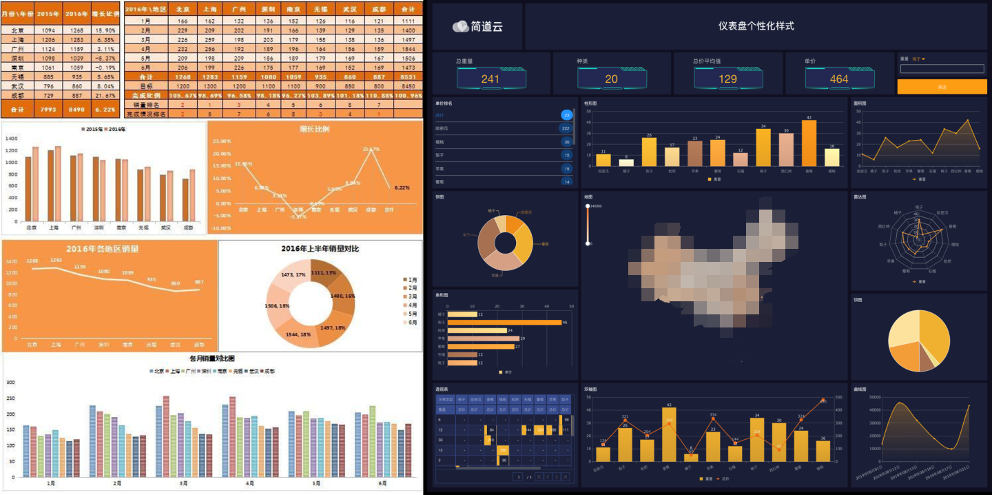 图源网络excel的炫酷报表是真的,但制作废力也是真的。如果你还在和excel纠缠,不如花5分钟时间,利用表单省力地做出一张美观直观兼备的报表: