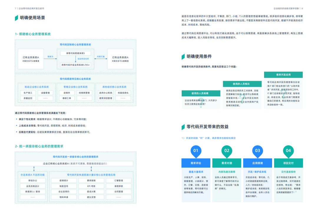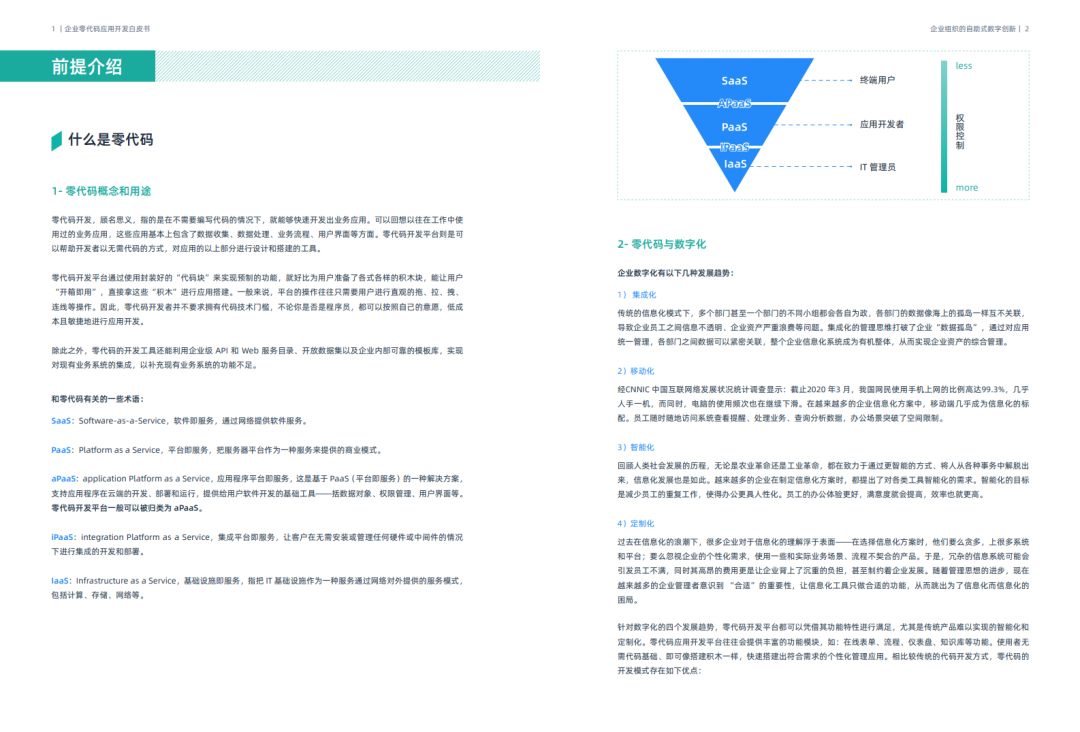 为了帮助开发者们更深入地理解零代码,更顺利地在企业组织之内实现自助式数字创新,我们编写了这本《企业零代码应用开发白皮书》。