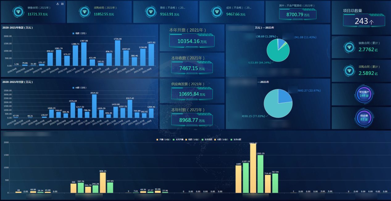 原来不同部门的项目数据经常核不平,现在是直接业财一体化报表;
