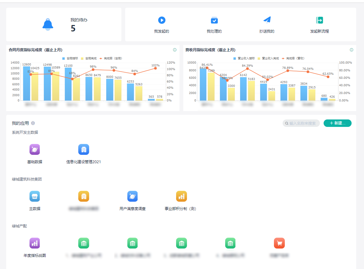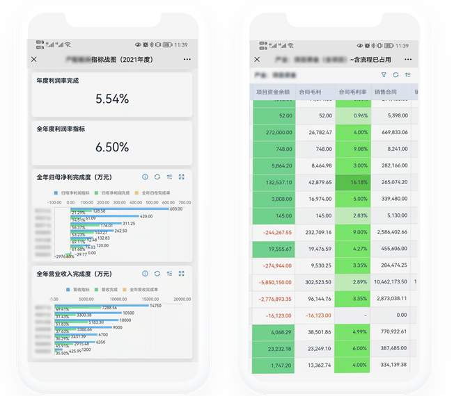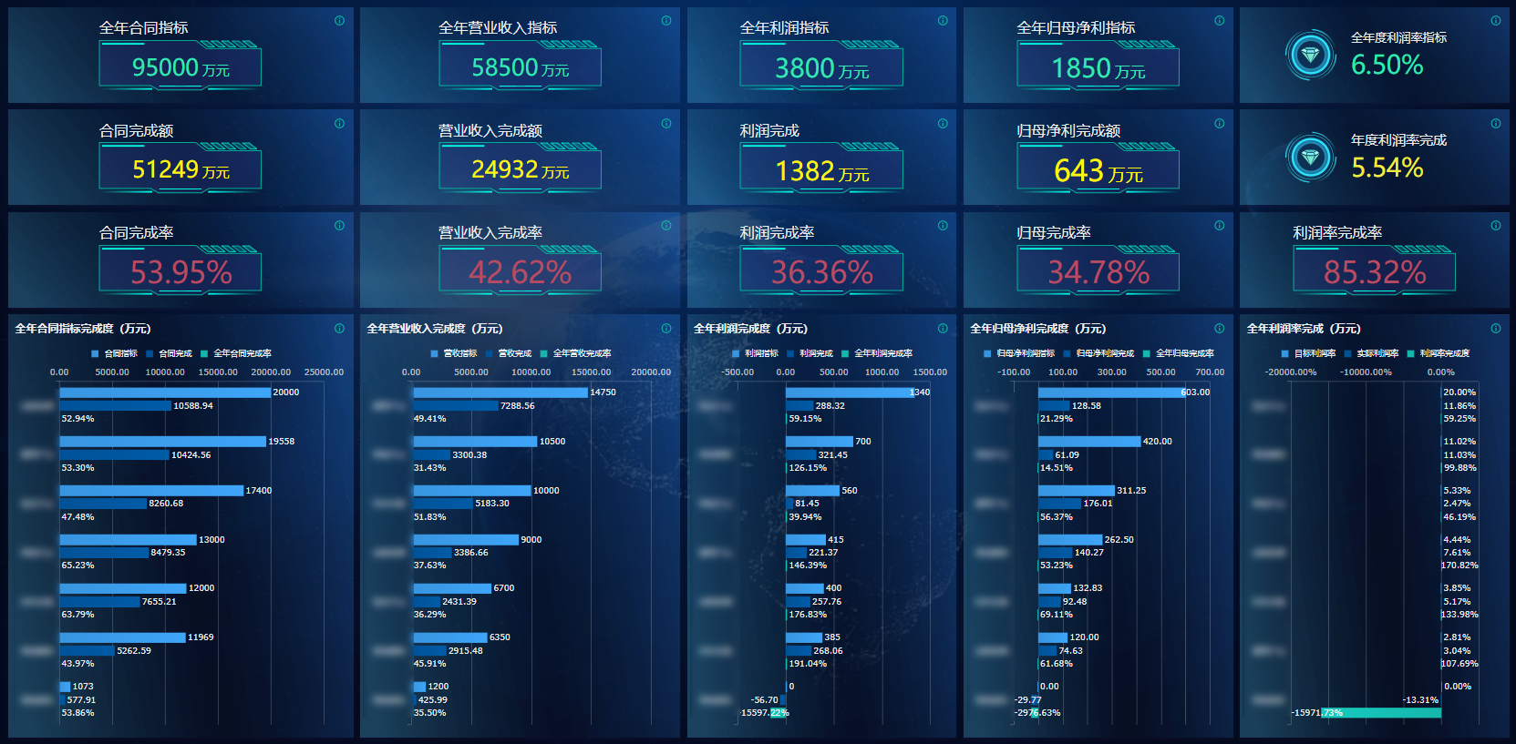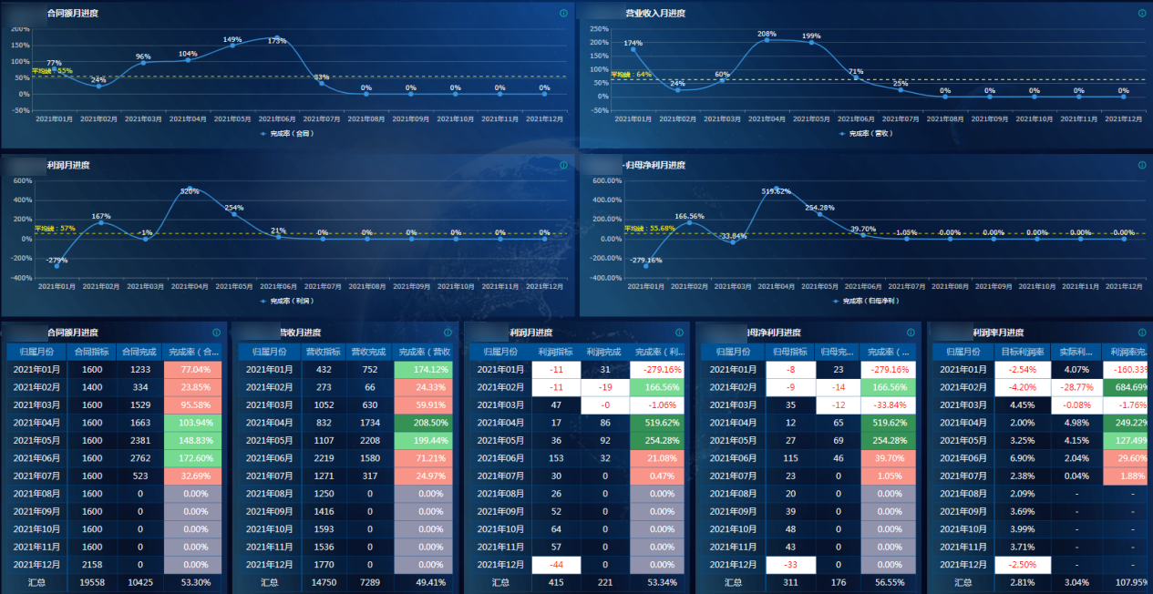 因为数据类型完整,可以随时根据需要创建出各种维度的报表,比如集团的仪表盘能够直观地展示出年度指标与完成进度。