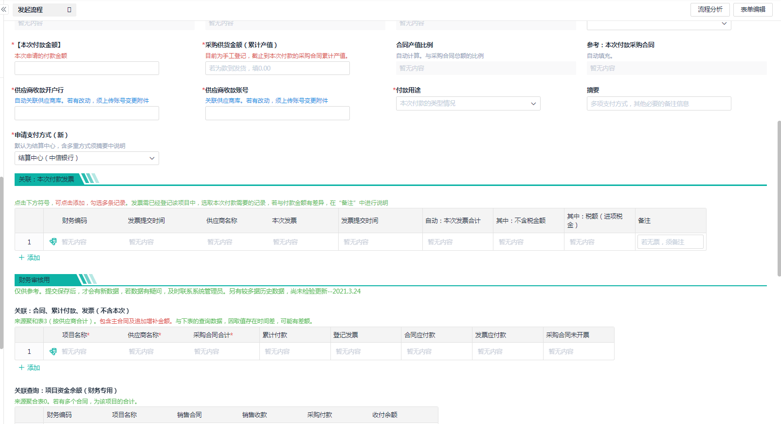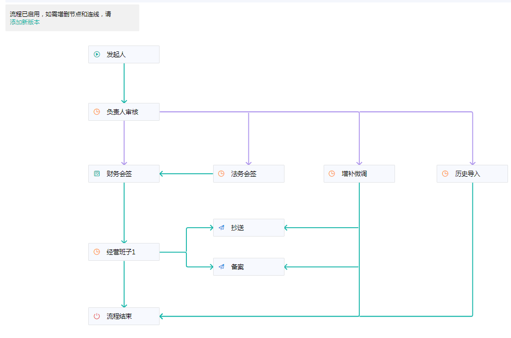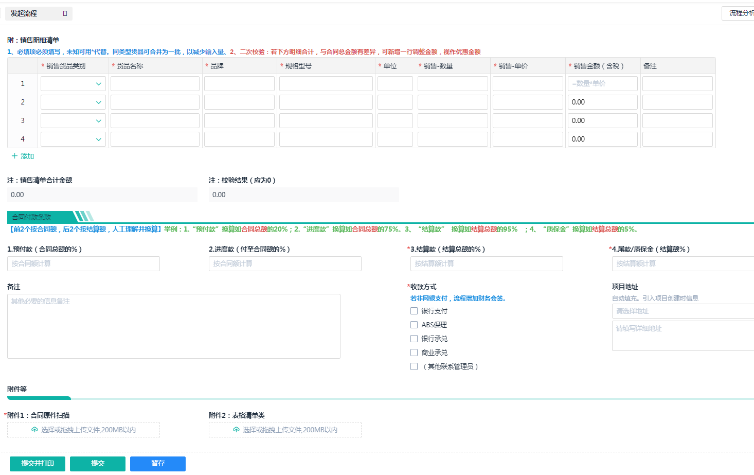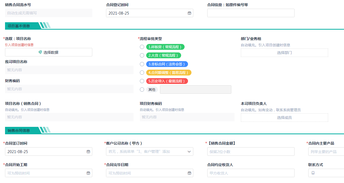 流程表单用于签订销售合同、采购合同,客户和供应商的准入和考核,发票和收付款的登记和申请,业务进汇报等实际审核审批工作。