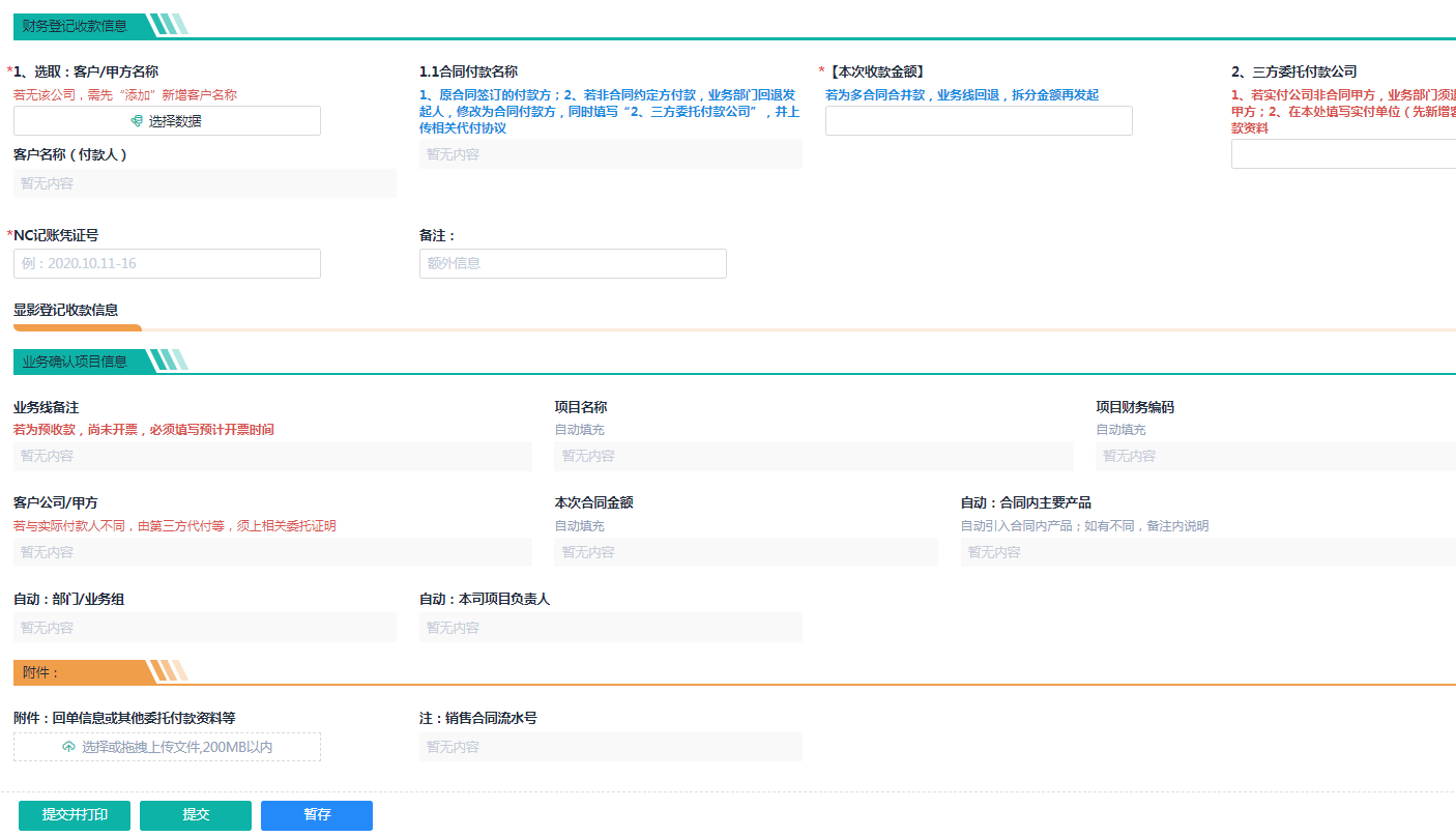 现在有了线上台帐,每个项目都有实时、独立的资金台帐,直接关联具体合同、每一笔收付款都清清楚楚,关键是会签、审核的流程里面自带项目的实时数据辅助,我们感受到了信息时代的智能辅助,终于可以安心签字审批了。”财务管理涉及收款确认、付款审核、发票管理,项目利润监测等财务口径数据。