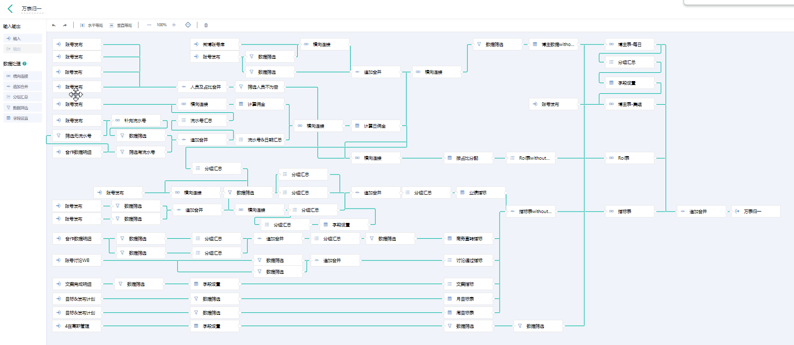 再如数据工厂,为了节省用量,严格要求一个应用控制在1-2个数据流,以至于经常一做就是30+节点的复杂大合流: