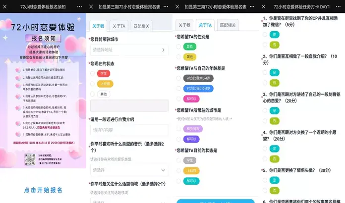 除此之外,如是书店还创新性地用简道云表单做了一场“72小时恋爱体验”的社交匹配活动。