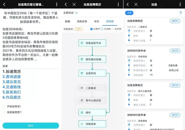 首先,如是书店从人事招聘的流程场景进行突破。