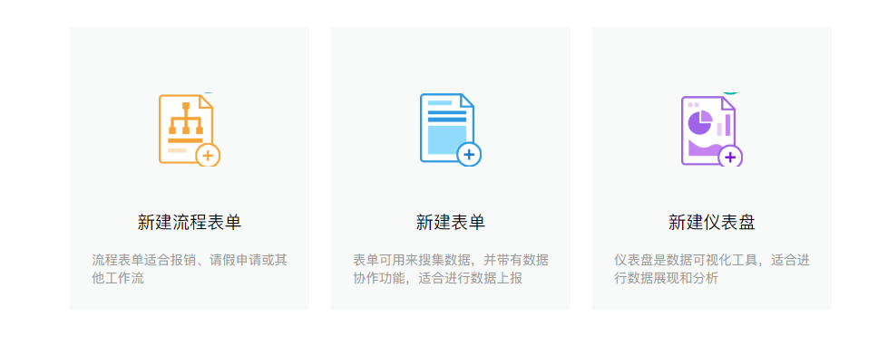 使用方法:表单目前有两种类型,一种是普通表单,「普通表单」具有数据收集与协作的功能,「流程表单」具有流程审批功能。两种表单类型是可以相互切换的,所以现在不清楚区别也没关系,选择一种新建即可。