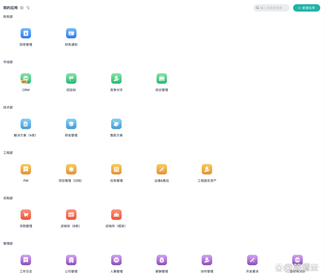 北京天鸿同信科技有限公司就利用简道云零代码平台,搭建了财务部、市场部、技术部、工程部、采购部和管理部的近20个应用,打通售前、售中和售后整个项目推进流程,解决了企业90%的业务需求。
