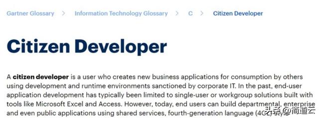 2012年:Gartner提出“Citizen Developer”的概念,即公民开发者/全民开发。