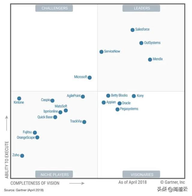 2017年:Gartner 魔力象限报告中,出现了新门类——hpaPaaS,并预测“到2020年,超过50%的企业应用将通过hpaPaaS平台搭建”;