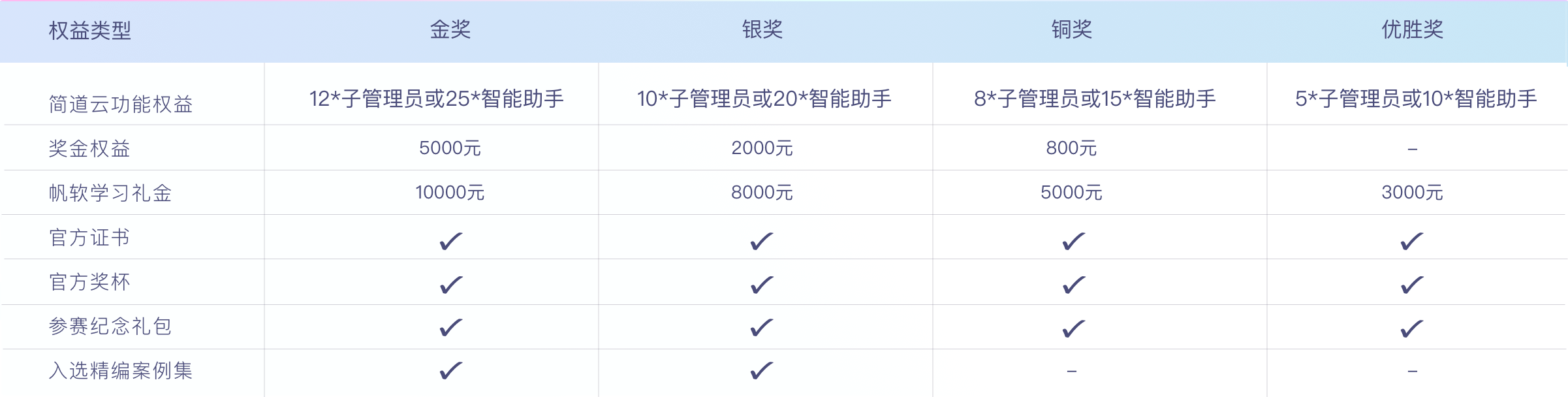 · 参赛作品的知识产权归参赛作者所有。报名时勾选愿意分享材料并成功提交材料,即视为同意简道云发布作品。简道云有权将参赛作品、作品相关以及作者信息用于市场宣传等行为(例如:媒体文章发布、官网展示等)