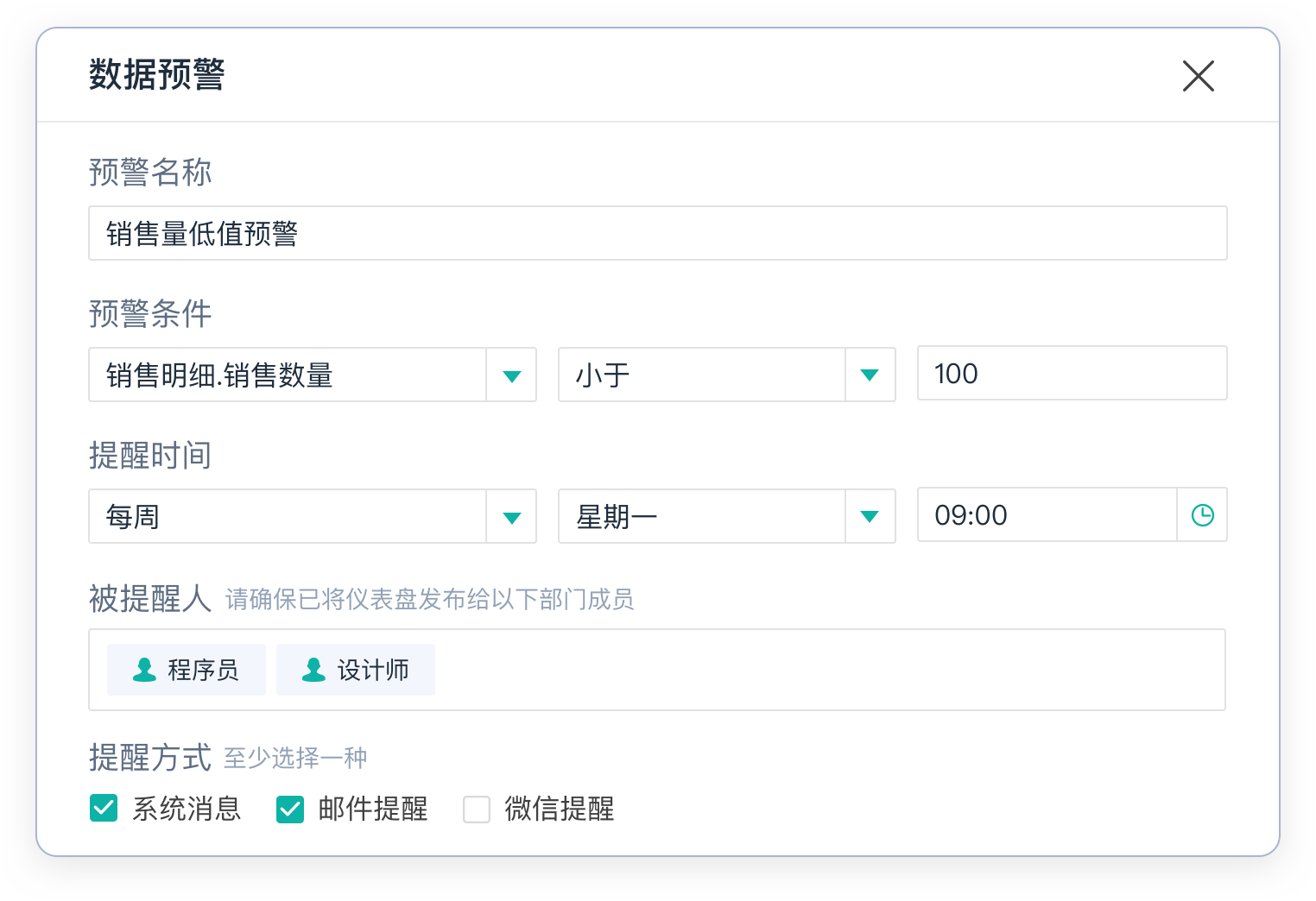 当数据出现异常时提醒给运营者,帮助运营者及时掌握数据发展动态,从而及时调整运营方案