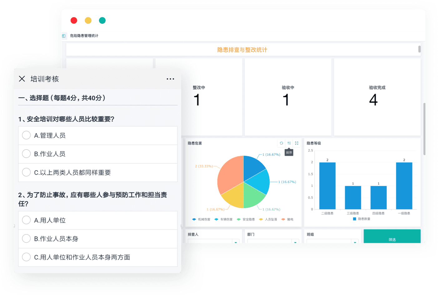 - 手机上给员工安排培训课程和考核题目,加强员工安全意识。