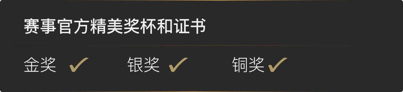 奖项设置·比赛分为三个奖项单元,各奖项单元设金银铜奖和优秀奖,金银铜奖的数量 不超过各奖项单元参赛作品的3%,5%,8%