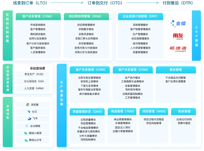 覆盖人财物产供销全场景,提供丰富模板,大幅缩短系统搭建周期。