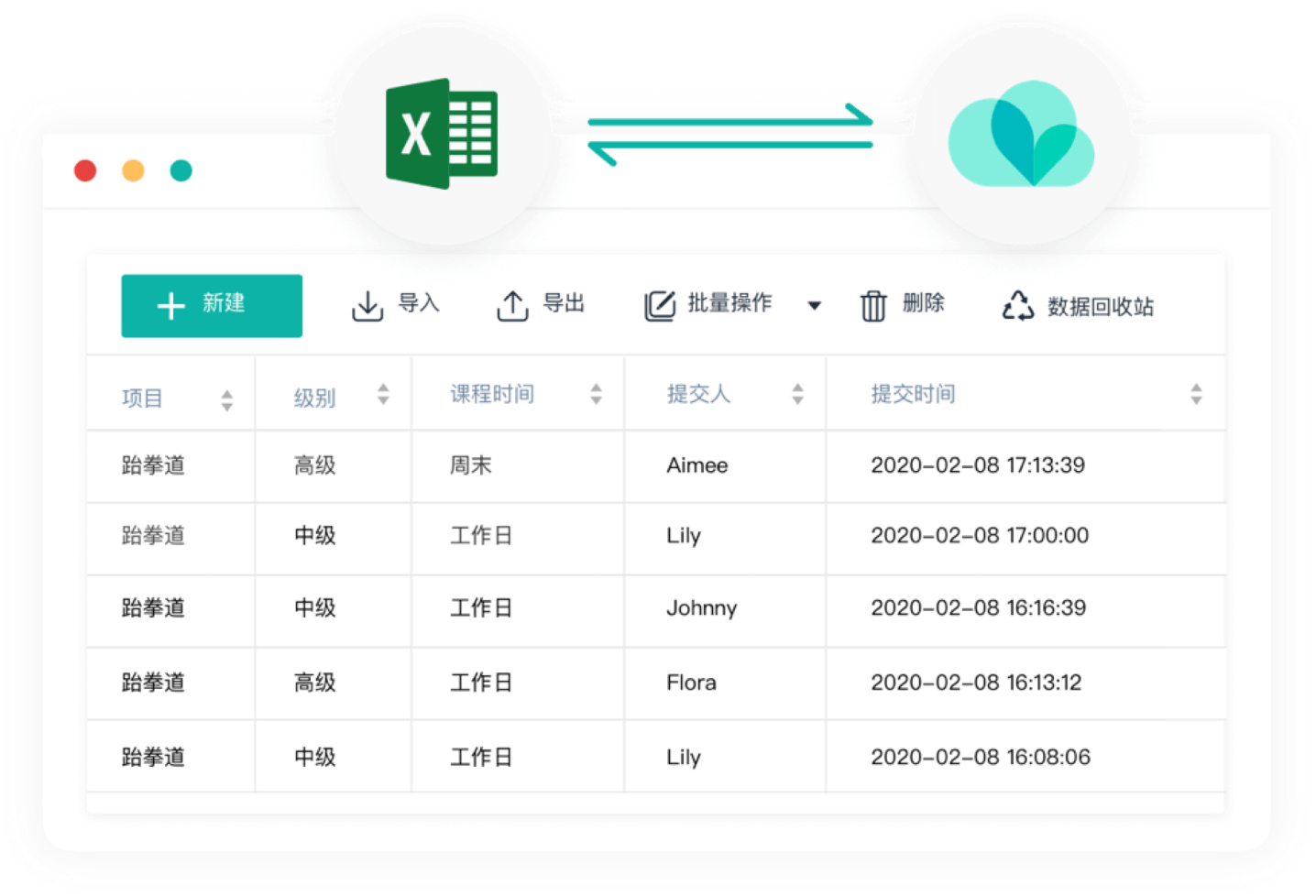 支持将excel数据导入到简道云,并在后台批量处理,生成多维度动态图表,报表更美观;也可以将简道云数据批量导出到excel。