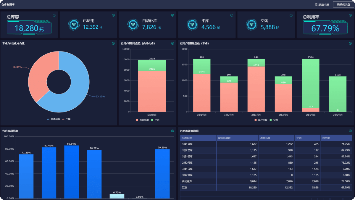 仓库利用率是仓储企业的核心指标。管理员制定出库位编码规则,为每一库位设定唯一编码,同时给托盘粘贴唯一条码, 系统记录托盘存放的库位,仓库员利用手机或手持终端,就完成货物上架下架,系统自动汇总计算出仓库利用率。