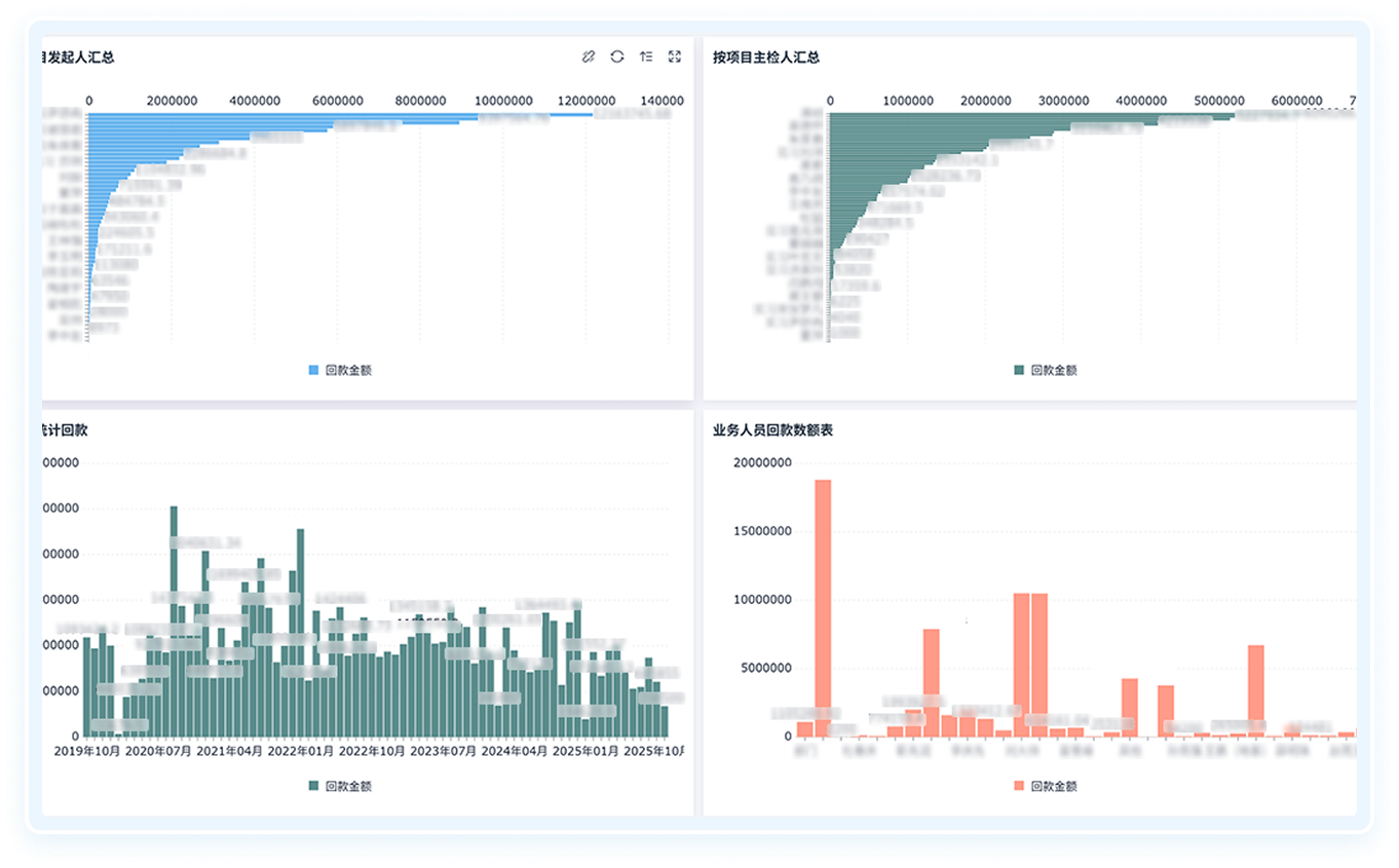 集成报销、应收应付等多维度数据,通过可视化看板辅助资金与利润分析。