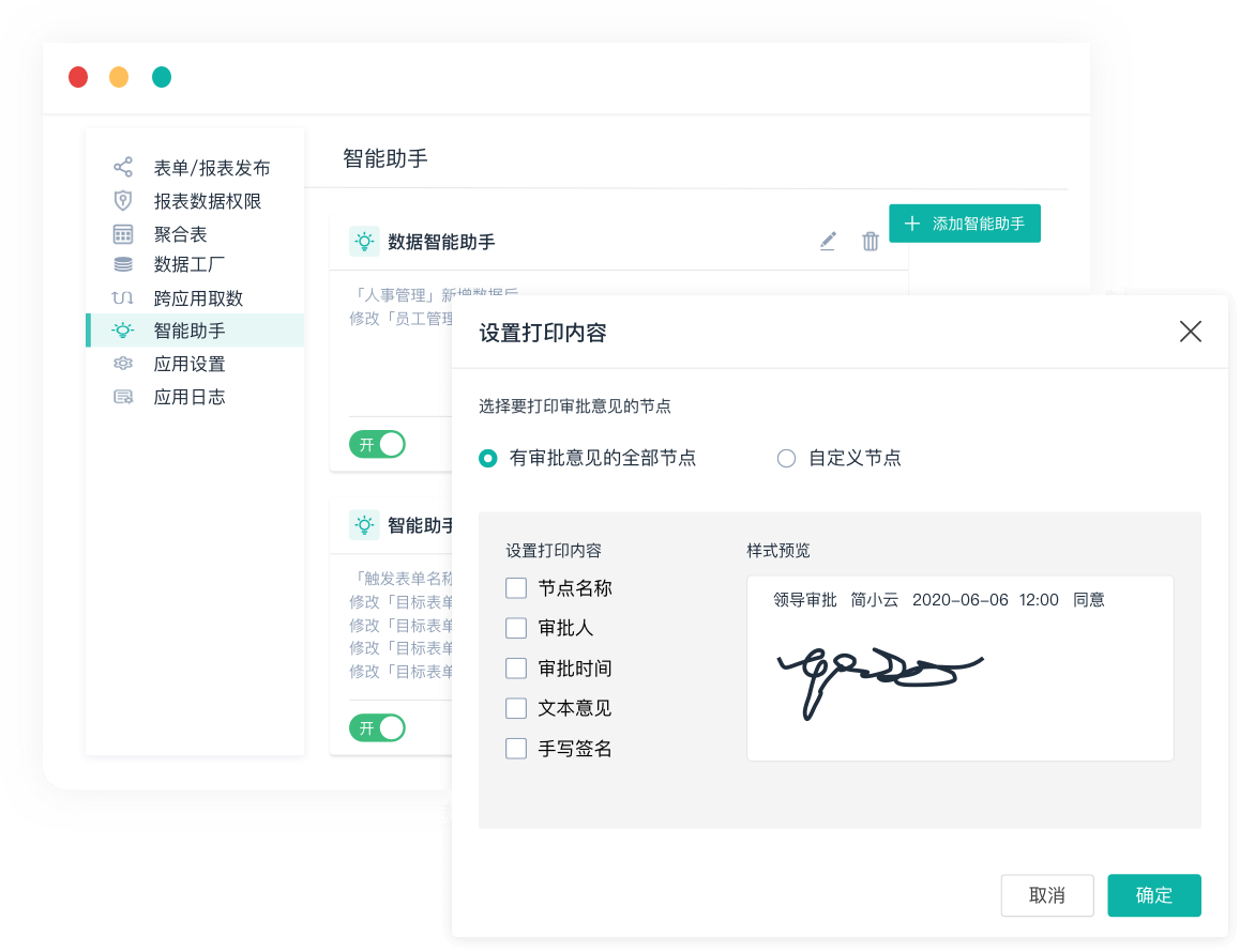 简道云提供如:单点登录、数据接口API、智能助手、聚合表、数据工厂、打印模板等高级功能,方便团队实现更加复杂的业务。