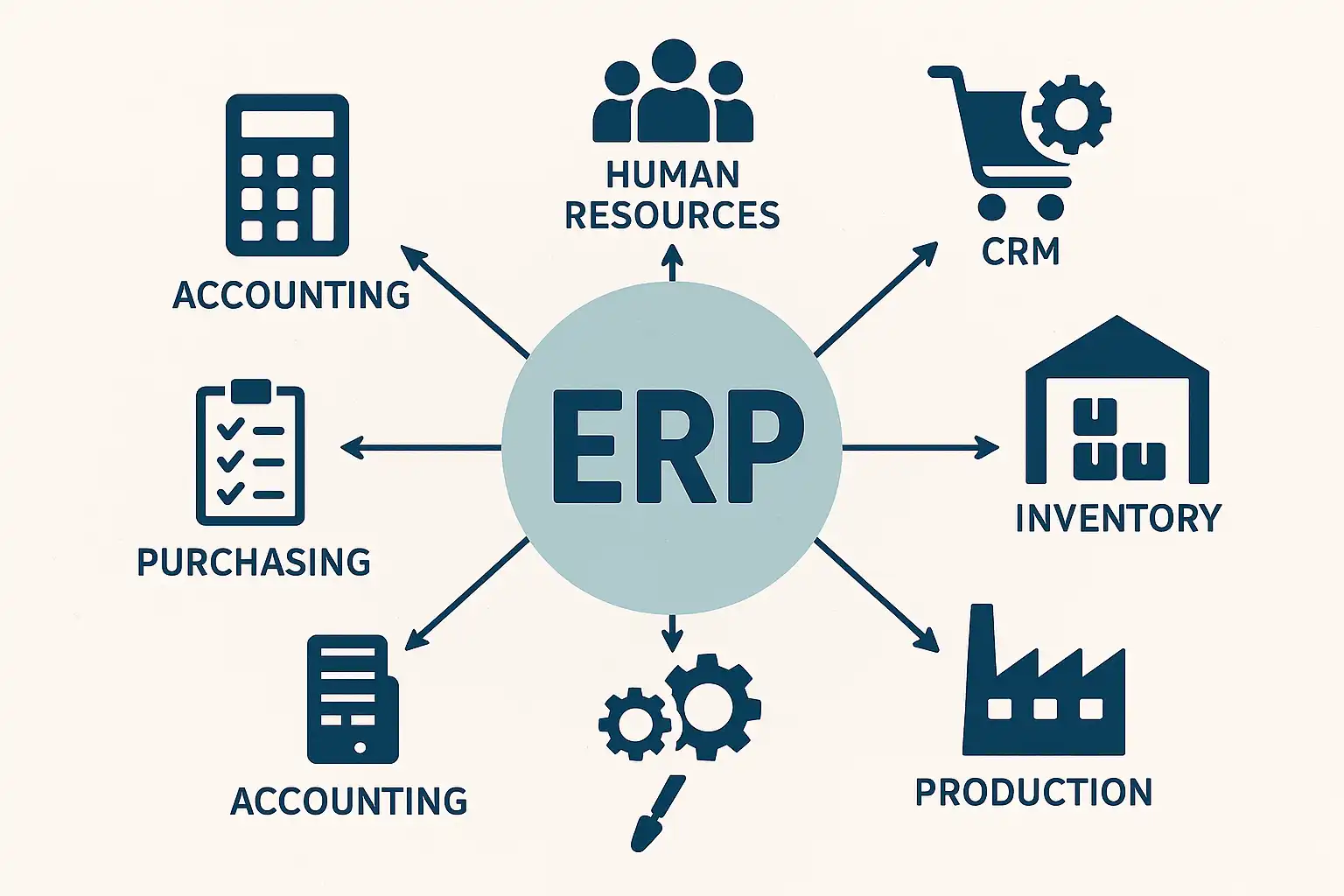 现代 ERP 系统通常包含以下几个核心模块,每个模块围绕着企业运营中的关键环节展开: