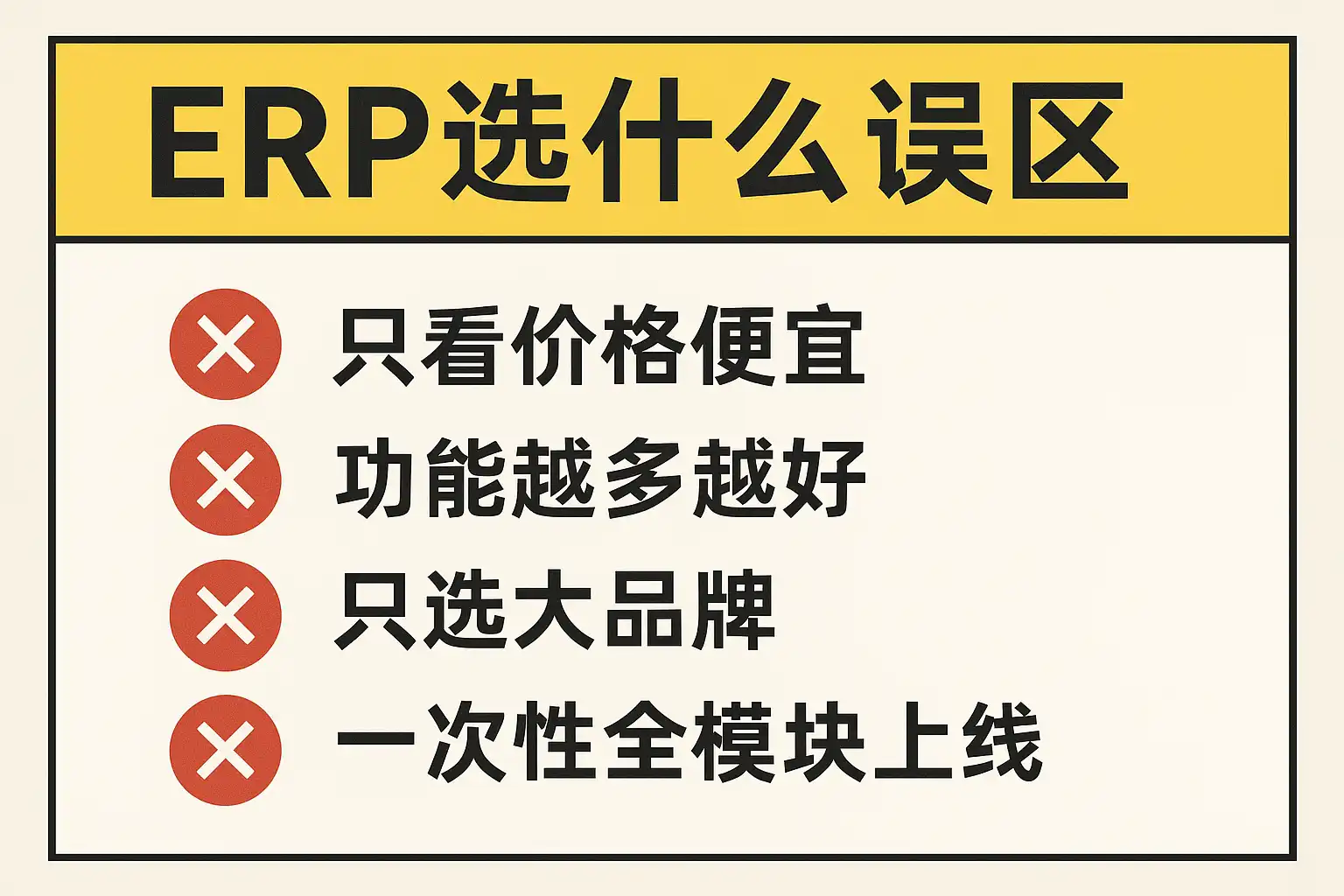 选择ERP系统时常见误区包括: