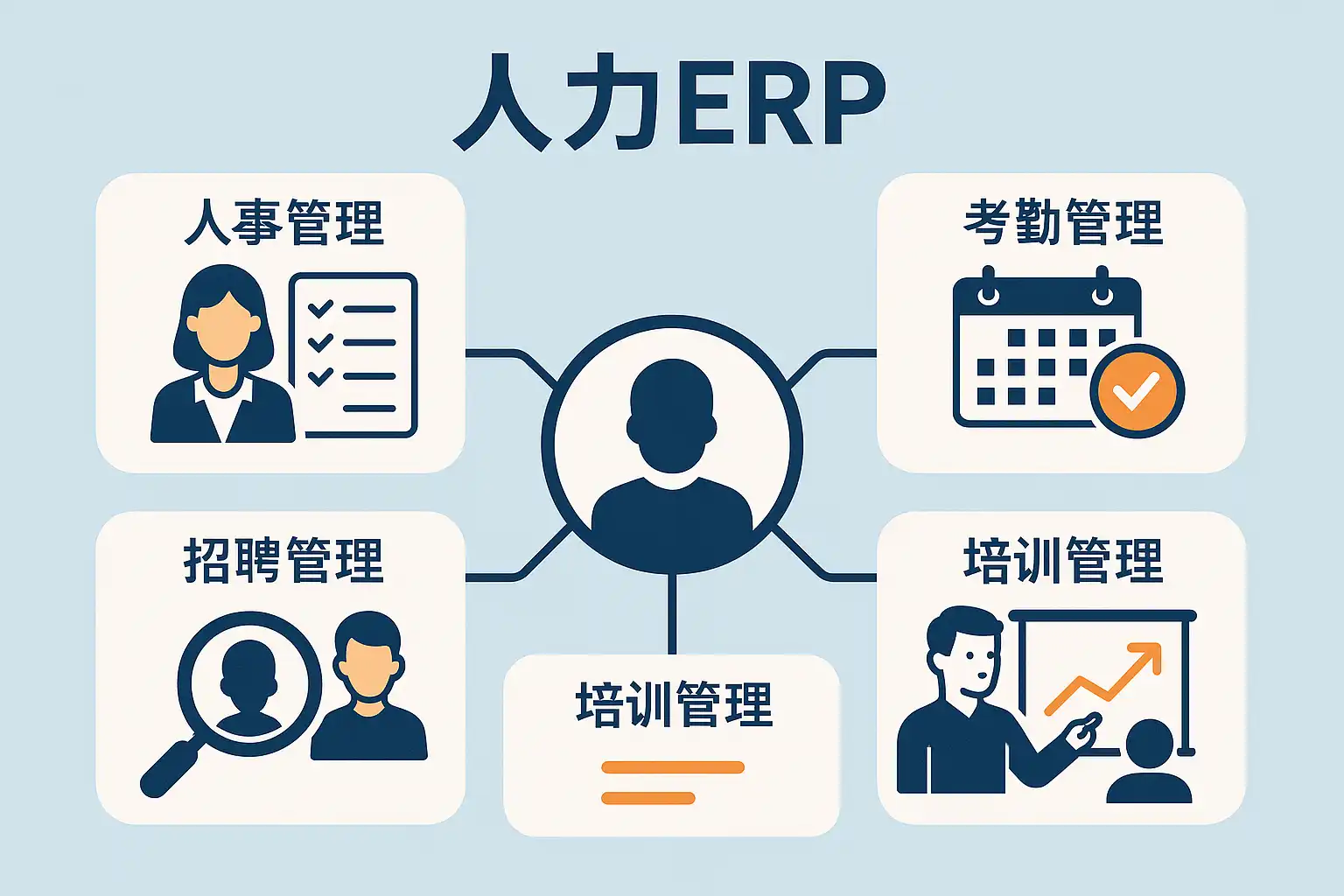 人力ERP系统通常包含以下核心功能: