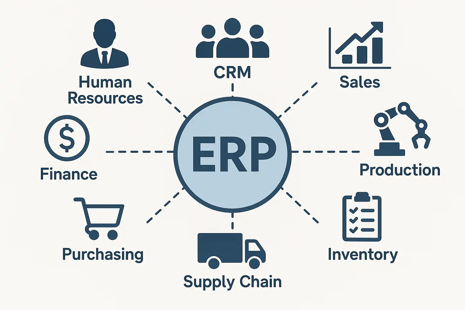 - 供应链管理(SCM):负责采购、库存和物流调度。
