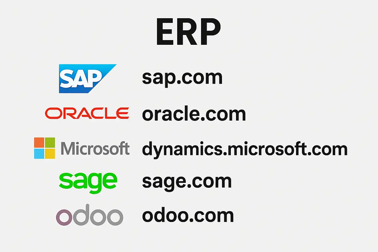 | SAP | sap.com | 全球最大ERP供应商,功能全面,行业覆盖广 |