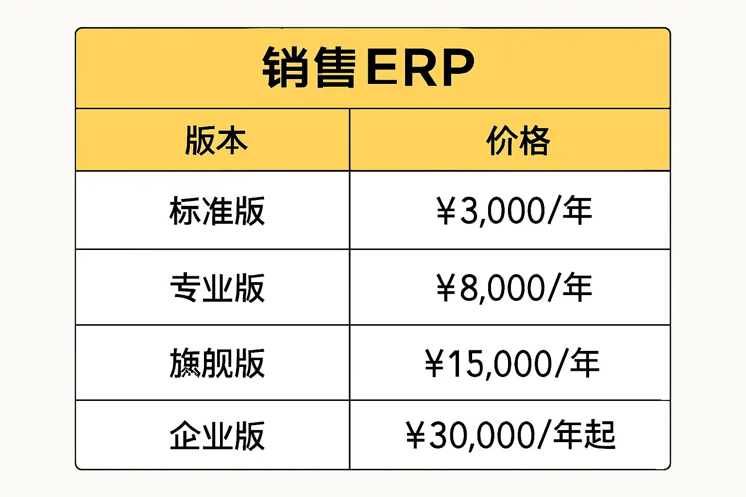 | 功能模块 | 功能越多,成本越高 | 包含库存管理、客户关系管理等 |