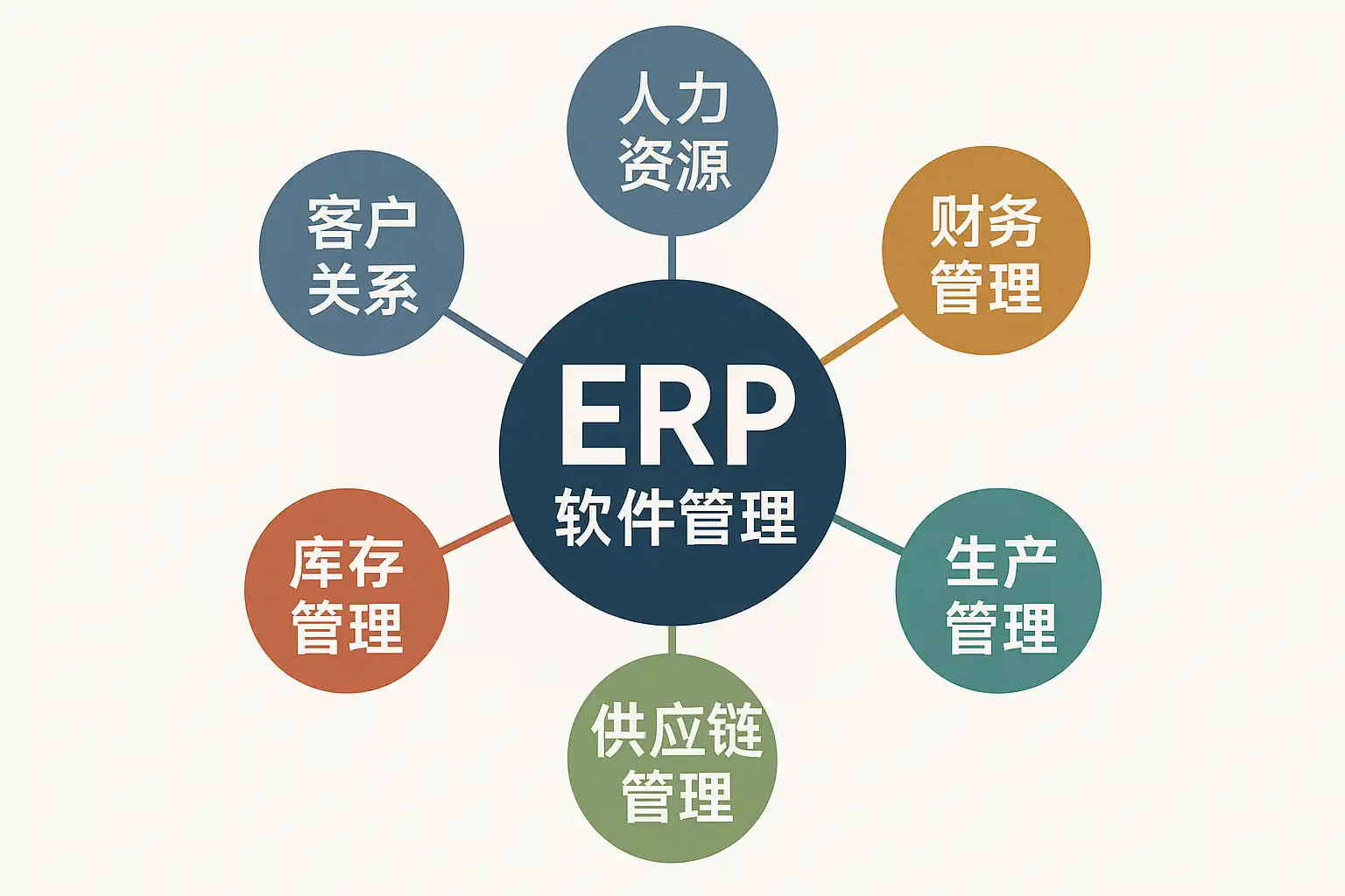 ERP(企业资源计划)软件是一种集成化的信息管理平台,通过多个功能模块协同工作,实现对企业各类资源与业务流程的全面管控。其主要管理模块包括:
