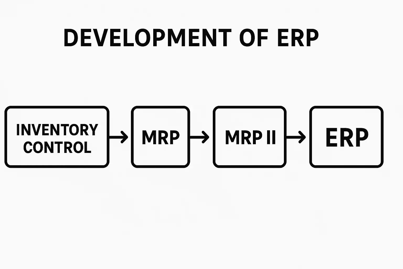 为方便理解,下表对比了手工分散式管理、MRP、MRP II及现代ERP系统在功能范围上的不同: