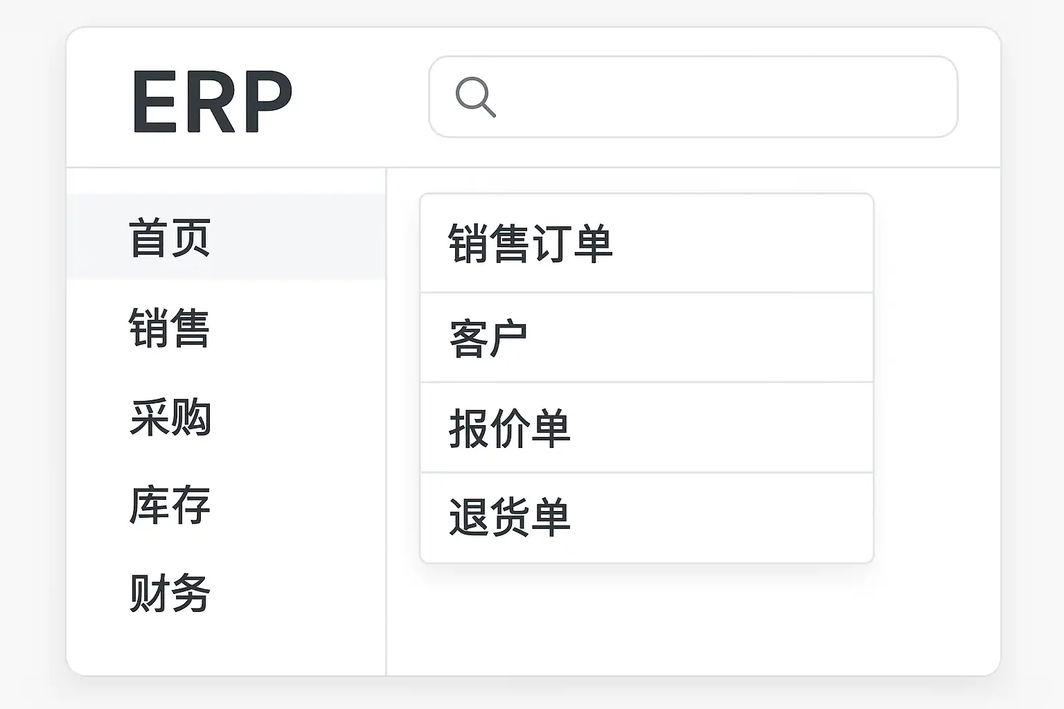 ERP选单基本定义 ERP选单(Selection Menu/Form),也被称为“功能菜单”或“数据录入表单”,是指在ERP软件界面中,为用户提供的一种可供选择或填报的数据交互窗口。常见于各类管理模块(如采购、销售、库存、人事等),通常包括下拉框、列表、多级菜单或表格形式。