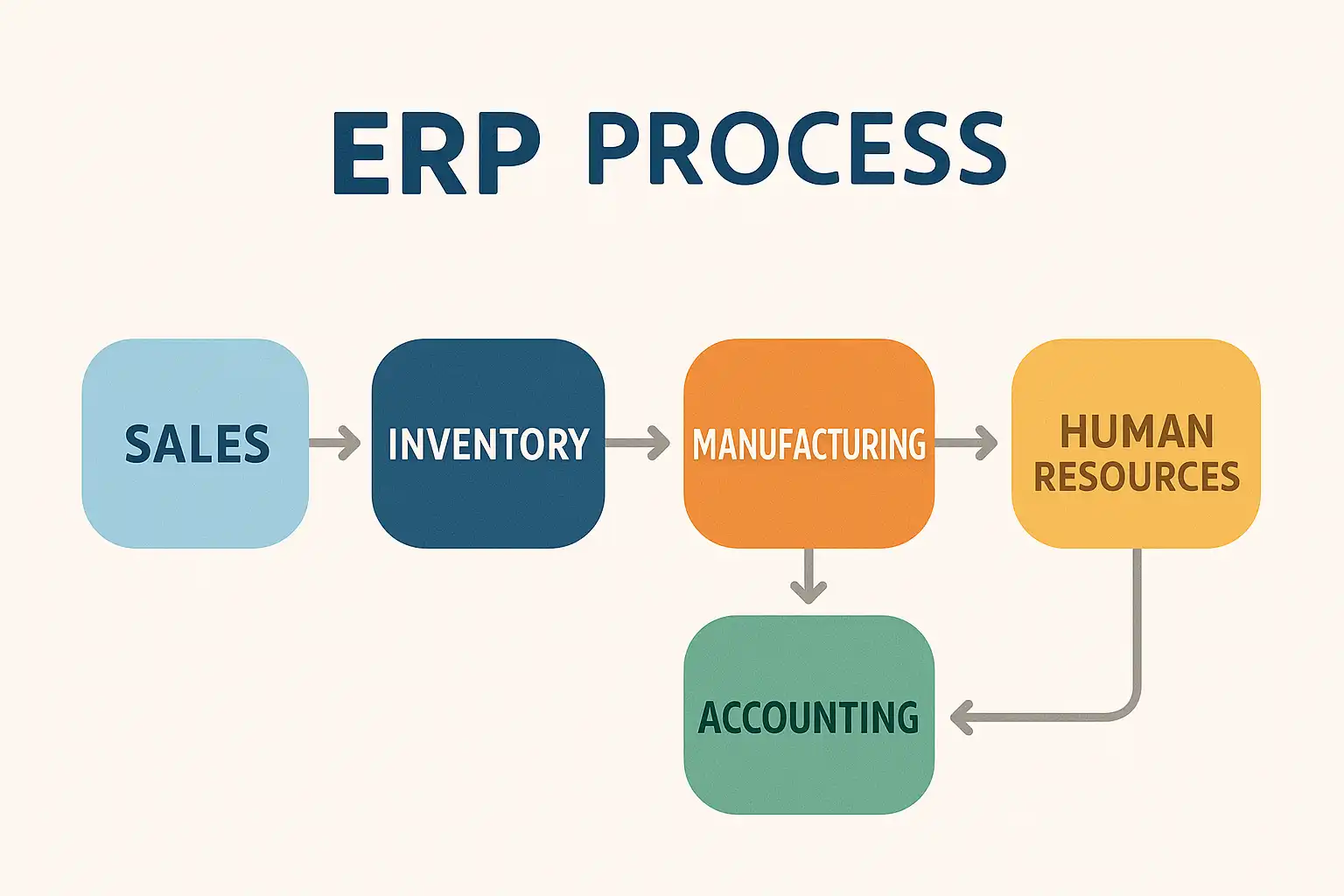 ERP系统通过整合企业各类资源,实现全流程数字化和自动化管理。其基本架构通常包括以下几个主要环节: